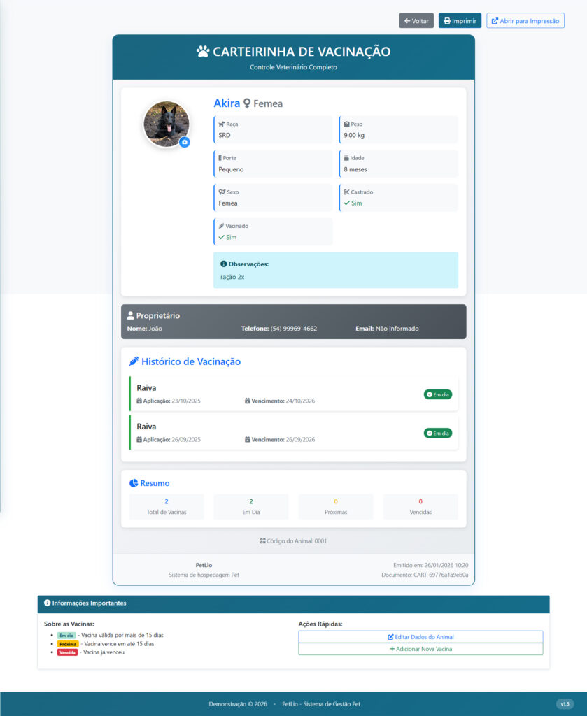 Com esse módulo, você oferece uma experiência completa e personalizada para cada animal, mantendo os tutores sempre informados.